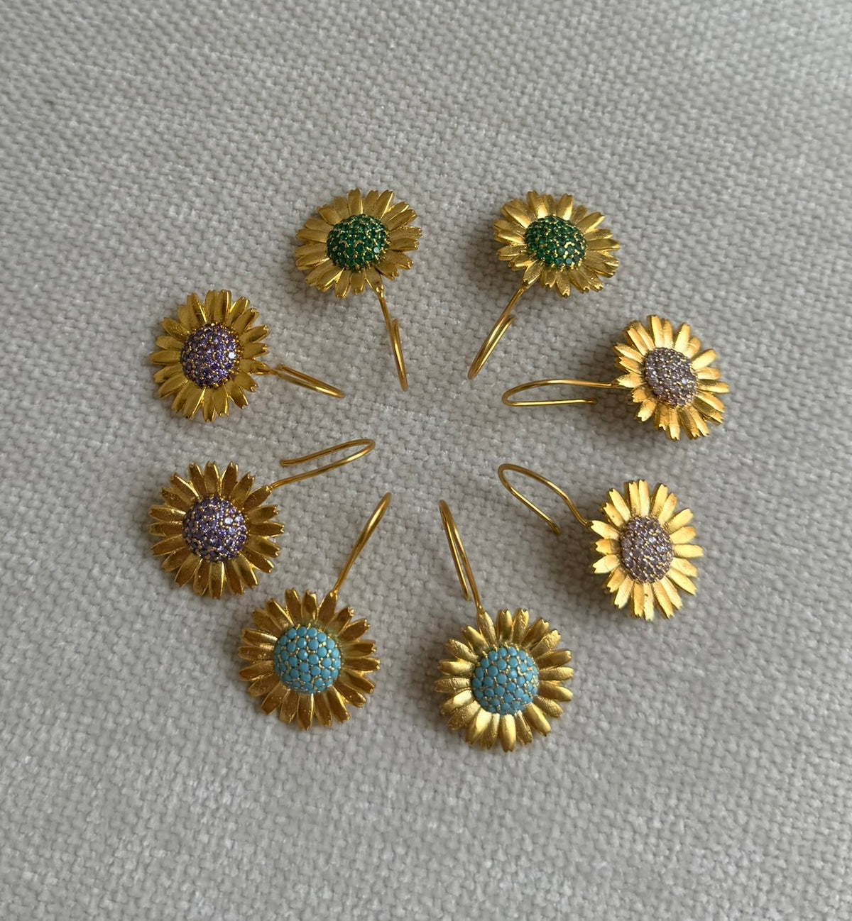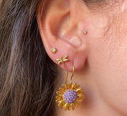 Plated Gold sun flower earrings with colored crystals